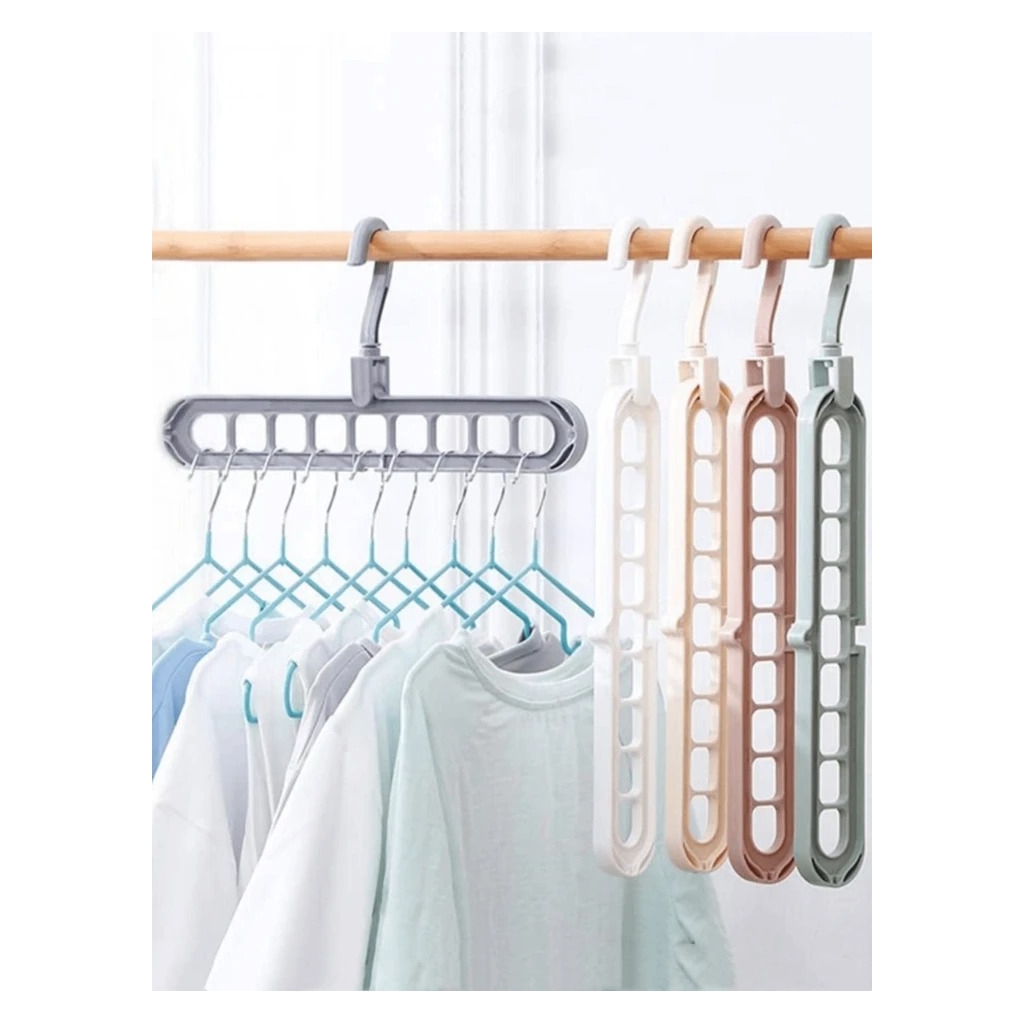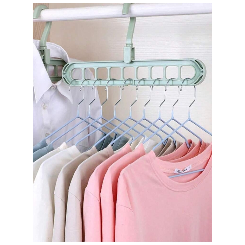 Cabide Mágico Multifuncional – Solução Ideal para Poupar EspaçoEste cabide mágico multifuncional é a escolha perfeita para maximizar o espaço no seu guarda-roupa. Com design inteligente e estrutura robusta, permite organizar várias peças de roupa de forma prática e eficiente.Características principais:Economia de espaço:Permite pendurar até 10 cabides simultaneamente, otimizando o espaço no armário.Design rotativo:O gancho pode rodar 360°, facilitando o acesso às suas roupas.Material resistente:Fabricado em plástico ABS durável, suporta roupas pesadas sem deformar.Versátil:Ideal para camisas, blusas, casacos, calças e até acessórios.Fácil de usar:Pode ser utilizado na posição horizontal ou vertical, dependendo da sua necessidade.Especificações técnicas:Material: Plástico ABS de alta qualidadeCapacidade: Até 10 peças por cabideDimensões: 33 x 17 cmCor: Verde mentaBenefícios do produto:Mantenha o seu guarda-roupa sempre organizado e livre de confusão. Este cabide é ideal para quem procura otimizar espaço e manter as roupas sempre acessíveis e bem cuidadas.