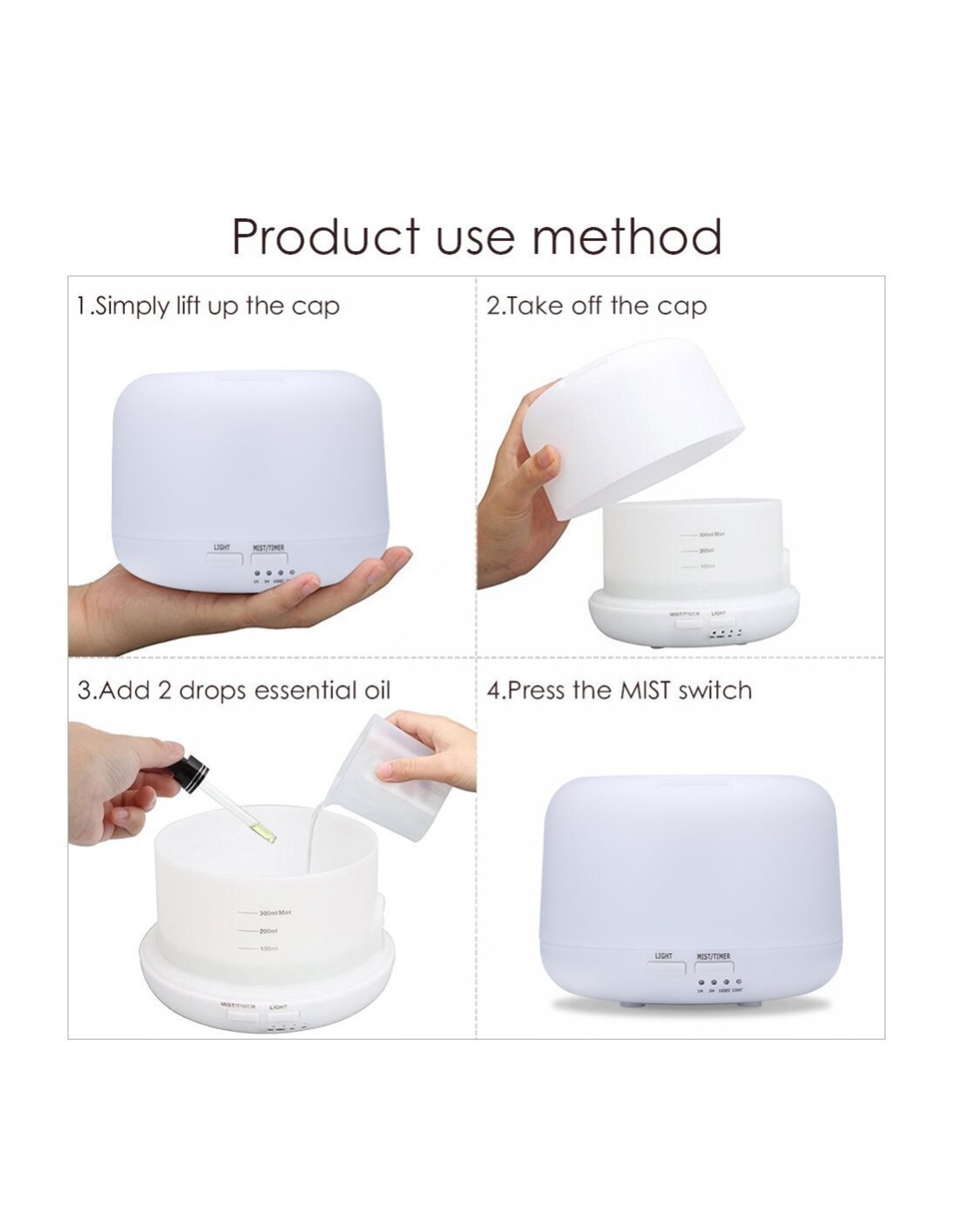 Humidificador Difusor de Aromas com Luzes LED MulticoloridasMelhore o ambiente da sua casa ou escritório com oHumidificador Difusor de Aromas com Luzes LED Multicoloridas. Este aparelho multifuncional combina o melhor da tecnologia de purificação de ar, aromaterapia e iluminação ambiente, proporcionando uma experiência completa de conforto e bem-estar.Principais CaracterísticasDesign 3-em-1:Combina humidificador, difusor de aromas e luz LED.Capacidade Generosa:Tanque de 400 ml para horas de funcionamento contínuo.Iluminação LED RGB:Escolha entre 15 modos de iluminação (14 cores fixas ou sequência multicolorida).Temporizador Personalizável:Opções de funcionamento por 10 segundos, 2 horas ou 4 horas.Desligamento Automático:Segurança garantida quando o nível de água atinge o mínimo.Silencioso:Ideal para ambientes de descanso, como quartos ou salas de meditação.Raio de Ação Amplo:Eficiente em espaços de 12-20 m².Como Funciona?Retire a tampa e encha o tanque com água (pode adicionar 0,2-0,3 ml de aroma ou essência diluída).Coloque a tampa de volta e ligue o aparelho à corrente elétrica.Escolha as opções desejadas de iluminação e temporizador conforme as instruções do manual incluído.Especificações TécnicasMaterial:PolipropilenoCapacidade do Tanque:400 mlPotência:16 WFrequência:2400 HzEntrada AC:100-240 V / 50-60 HzEntrada DC:24 V / 600 mADimensões:Ø 14 x 9 cmAdaptador de Corrente:Cabo de 150 cm com ficha do tipo CFunção de Segurança:Desligamento automáticoCores Disponíveis:MulticoloridasBenefícios do Produto✔ Melhora a qualidade do ar, proporcionando um ambiente mais saudável.✔ Cria uma atmosfera relaxante com aromas suaves e iluminação personalizável.✔ Ideal para relaxamento, meditação, noites de sono tranquilas ou como peça decorativa moderna.✔ Seguro e fácil de usar, com pés antiderrapantes e temporizador ajustável.