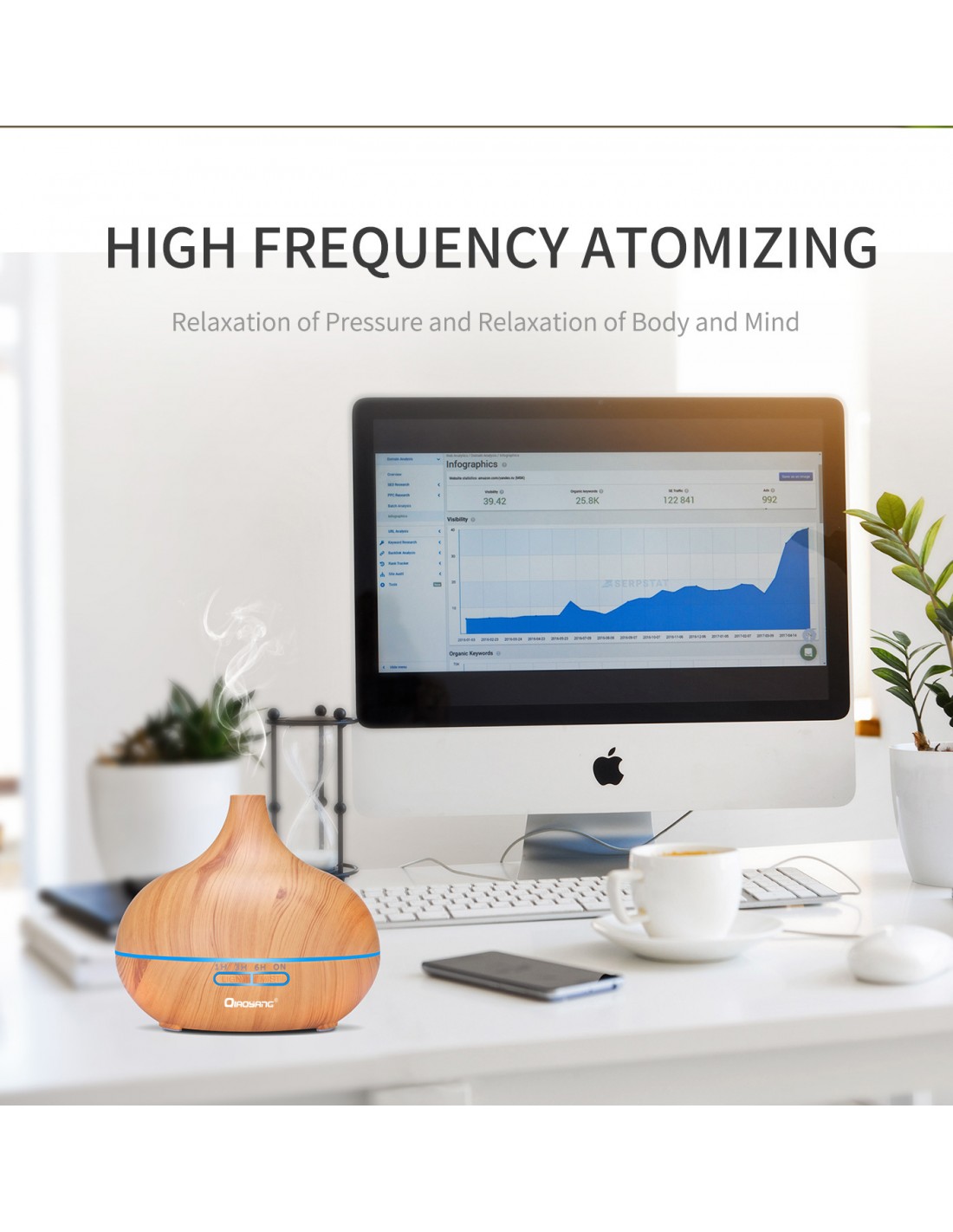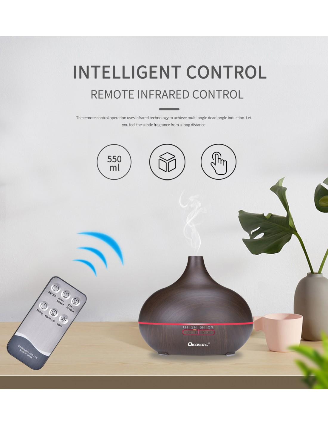 Difusor de Aromas Ultrassónico com Luz LED – Bem-estar e Atmosfera RelaxanteEste difusor de aromas combina a tecnologia ultrassónica com um design elegante, criando um ambiente perfumado e relaxante em qualquer espaço. Com capacidade de até 550 ml, proporciona horas de aromaterapia contínua, enquanto a sua luz LED de 7 cores ajustáveis adiciona um toque de serenidade ao ambiente.Características Principais:Tecnologia Ultrassónica:Produz vapor fino e silencioso, ideal para hidratar o ar e dispersar óleos essenciais.Luz LED de 7 Cores:Escolha entre cores suaves ou modo alternado para criar a atmosfera perfeita.Capacidade de 550 ml:Garante até 12 horas de funcionamento contínuo.Modo de Temporizador:Configure o tempo de difusão (1h, 3h, 6h ou contínuo).Design Elegante:Acabamento que imita madeira, perfeito para qualquer decoração.Fácil de Usar:Inclui controlo remoto para ajuste de luz, tempo e intensidade do vapor.Especificações Técnicas:Capacidade: 550 mlPotência: 10 WAlimentação: AC 100-240V / DC 24VFrequência: 2.4 MHzDimensões: 145 x 168 mmFunções: Vapor contínuo, temporizador, luz ajustável