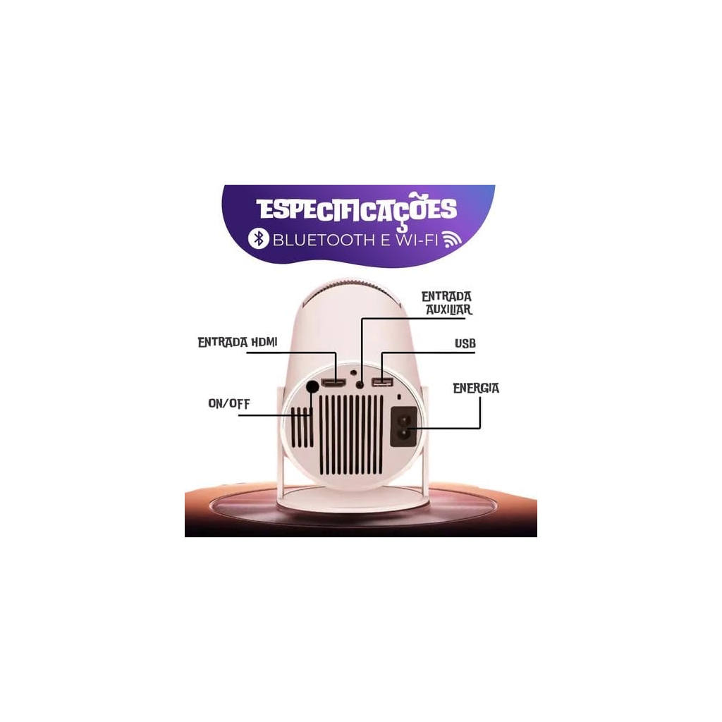 Mini Projetor Portátil HY300 4K Full HD Android 11Leve a experiência do cinema para qualquer lugar com o mini projetor portátil HY300. Compacto, potente e moderno, este projetor oferece imagens incríveis em resolução Full HD 1080p com suporte a 4K, ideal para filmes, jogos e apresentações.Benefícios:Imagens nítidas e brilhantes mesmo com luz ambienteTotal liberdade de conexão com dispositivos móveis e áudio sem fiosSistema Android integrado para usar apps diretamente no projetorPortátil, leve e fácil de transportarTransforme qualquer espaço num verdadeiro cinemaCaracterísticas:Resolução:Full HD 1080p com suporte a 4KBrilho:8000 lumensContraste:10000:1Tamanho da Tela:de 40” a 130”Conectividade:5G Wi-Fi e Bluetooth 5.0Sistema Operativo:Android 11Correção de Tela:automáticaSuporte Rotativo:180°Ângulo de projeção:160°Áudio:Altifalante Hi-Fi 5W integradoCompatibilidade:Funciona com 99% dos formatos 4KIdeal para:Utilizadores que querem um projetor completo e práticoQuem deseja uma solução portátil para entretenimento em casa ou em viagemFamílias e grupos que querem ver filmes e jogar em ecrã grandeInclui:1 Mini Projetor HY3001 Suporte rotativo1 Cabo de alimentação1 Comando remoto1 Manual de instruções