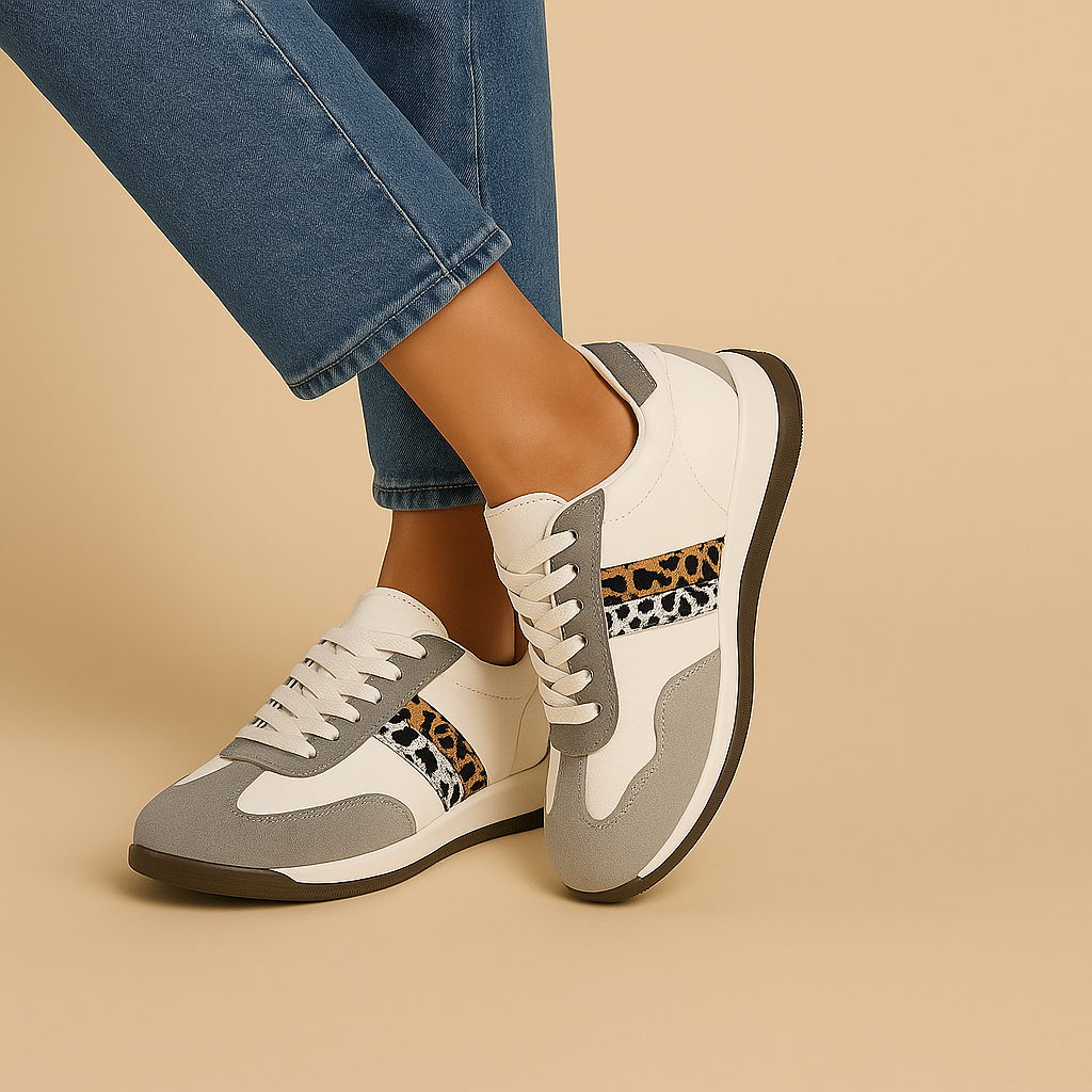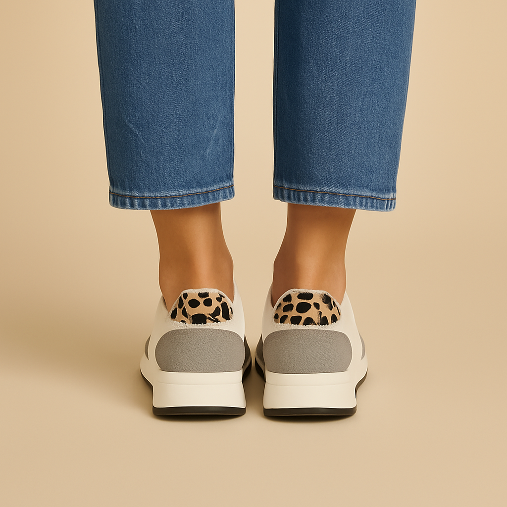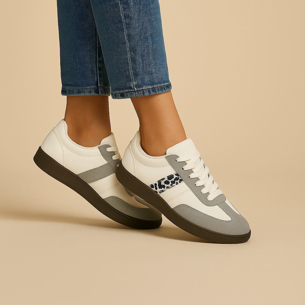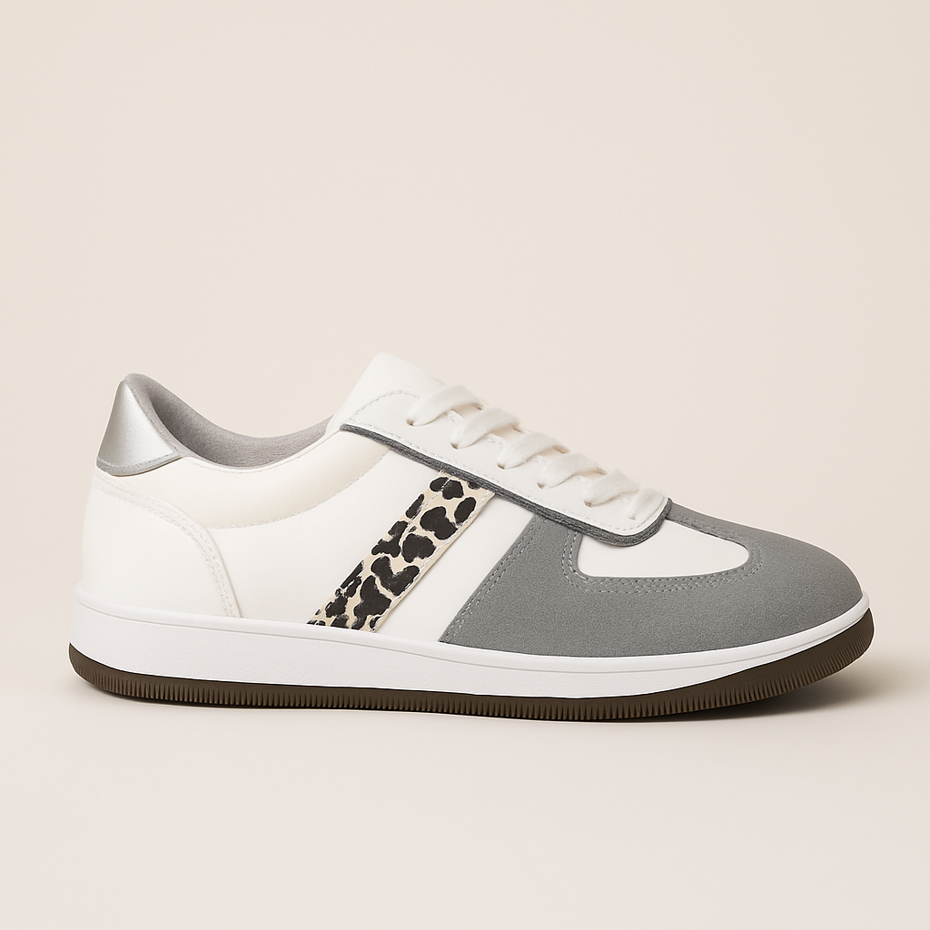 Conhece a Sapatilha Lince, o equilíbrio perfeito entre o clássico e o contemporâneo. Com um design minimalista e toques de cinza, branco e um discreto padrão animal, esta sapatilha é a escolha ideal para elevares qualquer look.