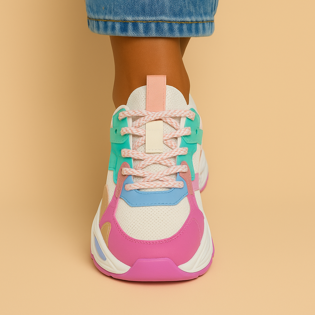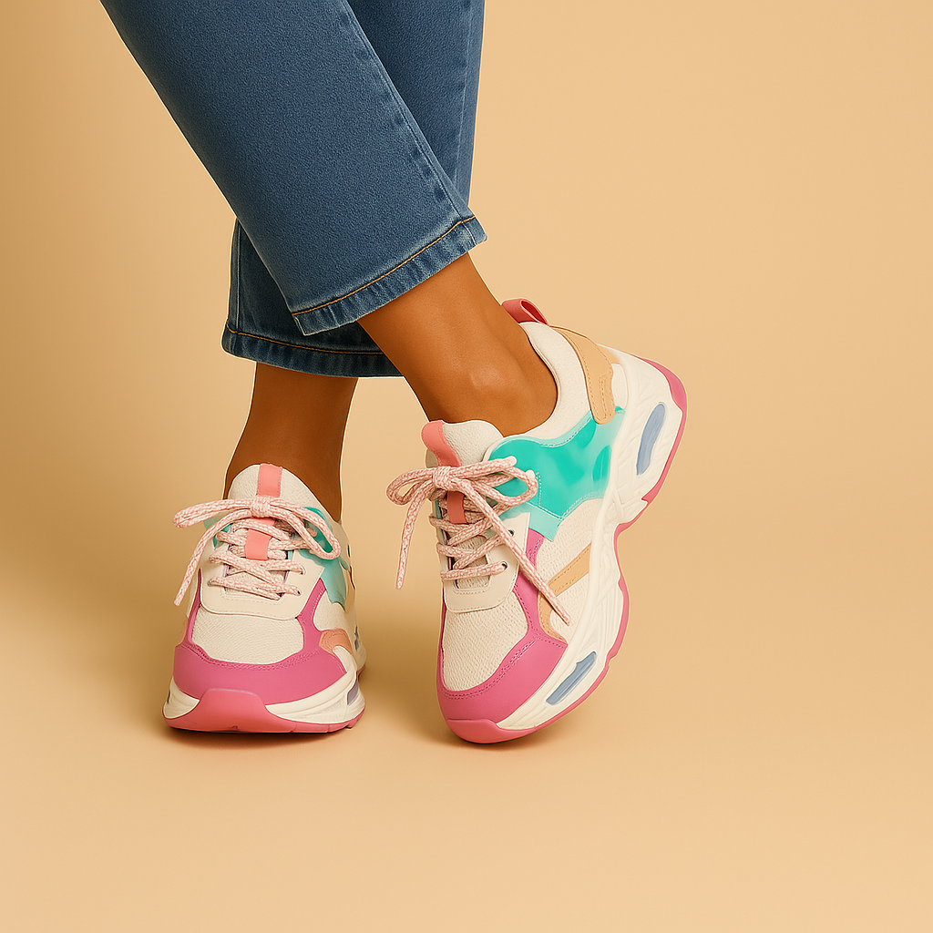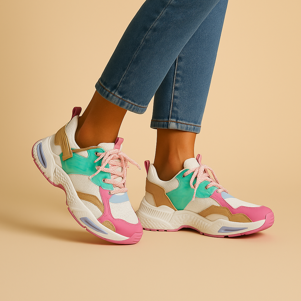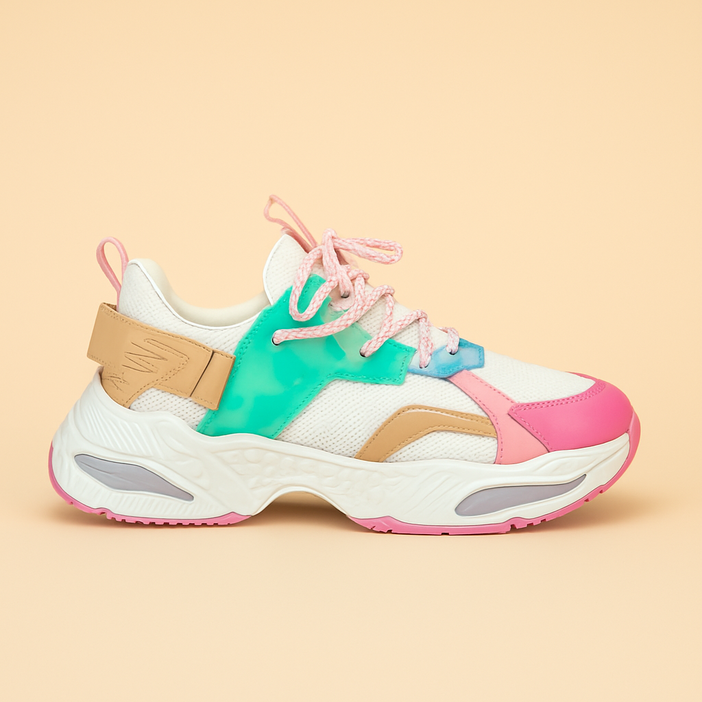 Prepara-te para a Sapatilha Urbana, o par que te vai elevar o teu look a um novo nível. Com um design arrojado, um padrão animal e detalhes metálicos, esta sapatilha de plataforma é a peça que faltava para quem não tem medo de se destacar na multidão.